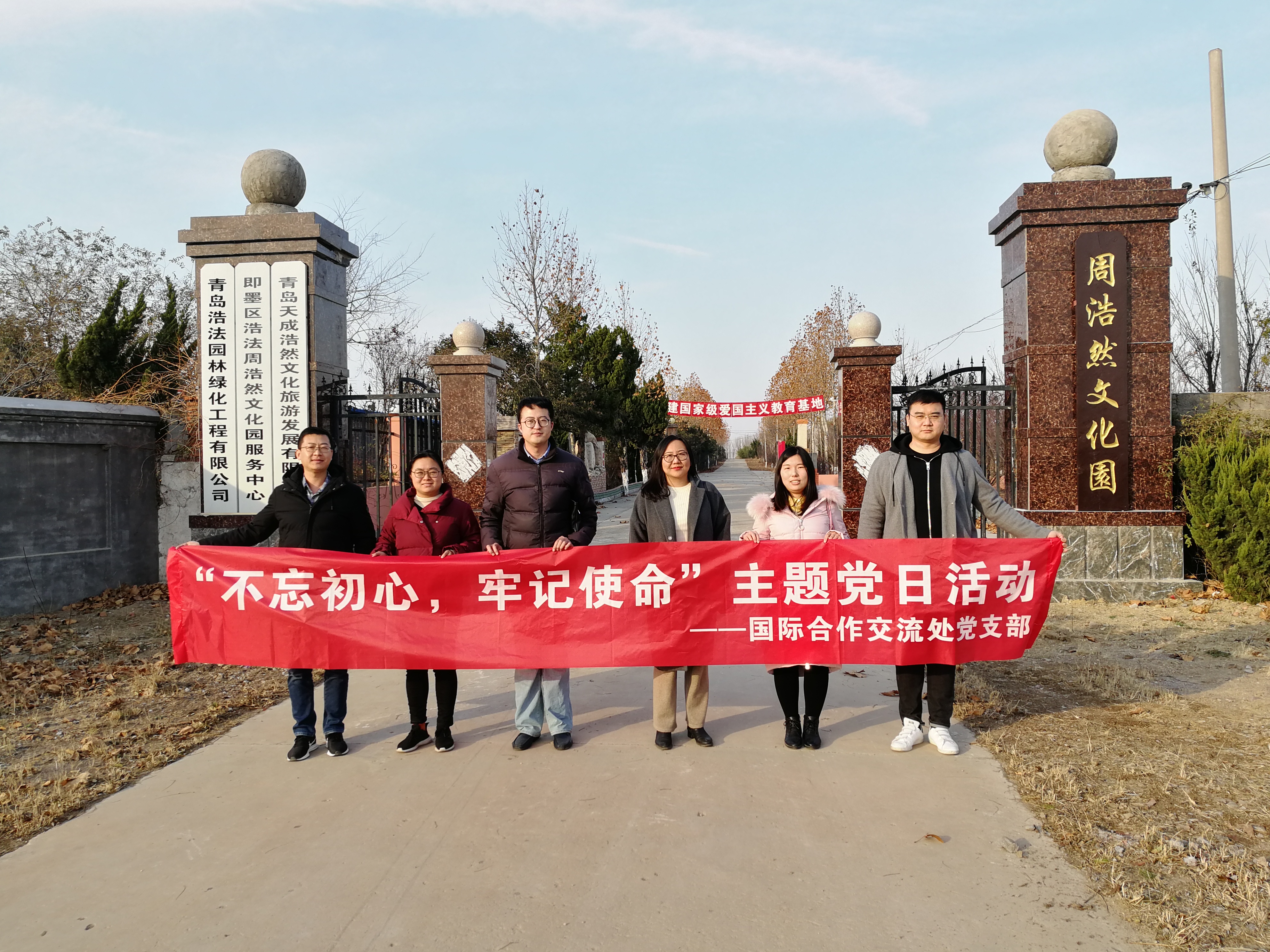 11月29日下午,williamhill英国党支部全体成员来到位于青岛市即墨区的红色教育基地-- 周浩然烈士文化园,瞻仰烈士遗迹,学习领悟烈士的伟大精神。