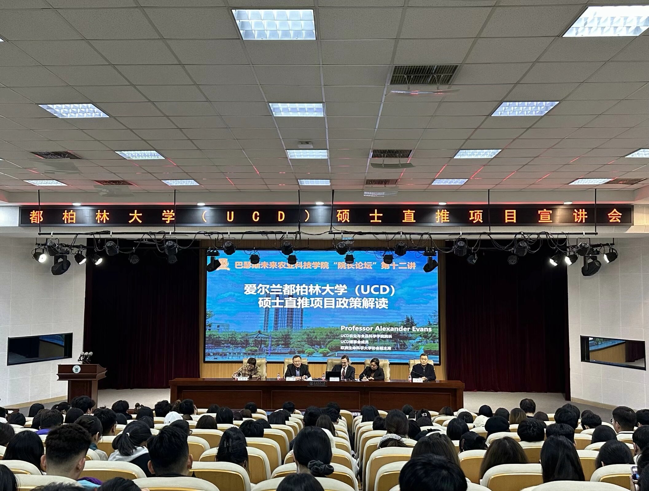 来访期间,亚历山大·埃文斯一行与动物科技学院召开了座谈会,就明年两校在动物科技领域共同开展的学术交流活动细节进行了商定。巴瑟斯未来农业科技学院组织举办了都柏林大学硕士直推项目政策解读报告会,邀请亚历山大·埃文斯就都柏林大学的地理位置、专业设置、硕士申请要求、留学项目费用等方面进行了讲解。同时,亚历山大·埃文斯与巴瑟斯未来农业科技学院学生召开了座谈会,围绕学生提出的有关硕士直升项目的申请条件等问题进行了详细解答。