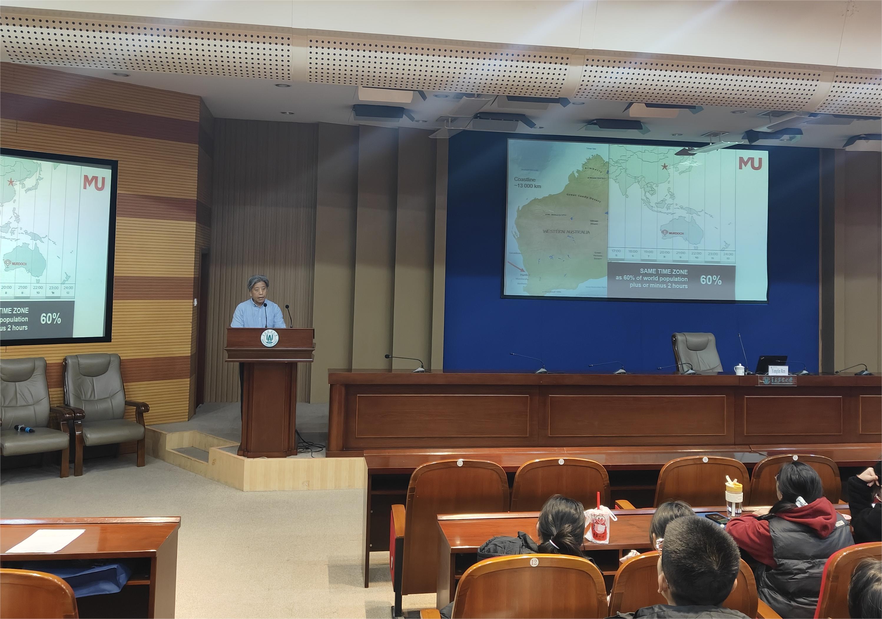 作为学校的特聘教授,Yonglin Ren为学校研究生开设研究生国际化视野提升讲座,围绕如何开展国际科研,撰写英文简历以及提升学术论文写作能力等方面进行讲解,并介绍了莫道克大学与我校联合培养博士项目的招生政策、入学要求等内容。同时,Yonglin Ren与学校巴瑟斯未来农业科技学院本科生就专业学习、职业生涯规划等进行了交流;与农学院、植医学院师生就联合科研等进行了座谈。