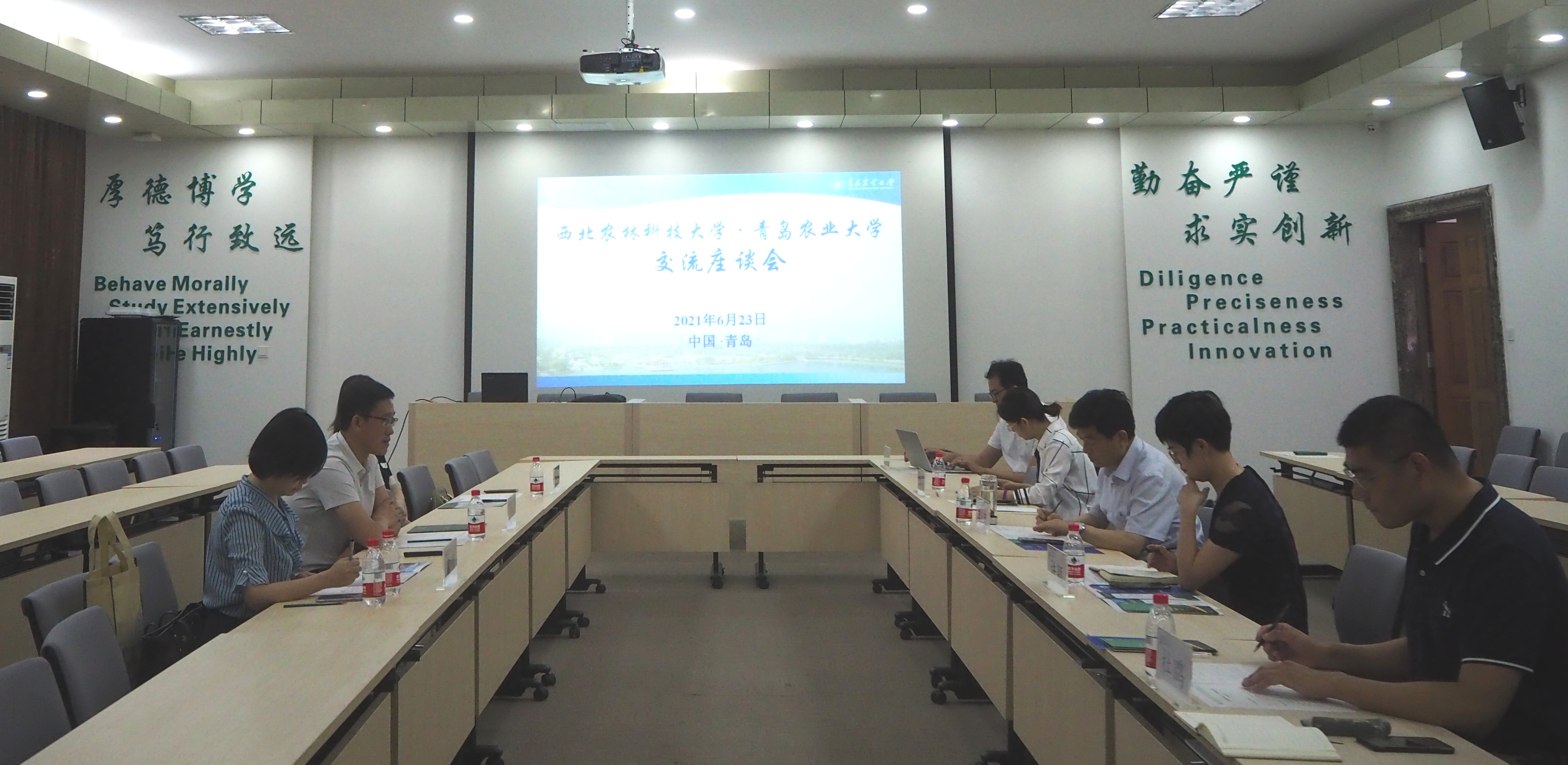 田义轲代表学校向刘学波一行表示欢迎,并从学校发展概况、人才培养、科技创新、社会服务、国际交流与合作五方面介绍了学校的基本情况和取得的成绩,并重点介绍了学校与“一带一路”沿线国家、上合组织成员国的高校和科研院所开展的科教合作,以及取得的一系列实质性交流合作成果。刘学波对学校的欢迎表示感谢,并介绍了西北农林科技大学的各项基本情况,重点介绍了学校“12345”发展模式,并详细讲述了学校响应“一带一路”倡议、推进国际农业合作领域方面的工作。