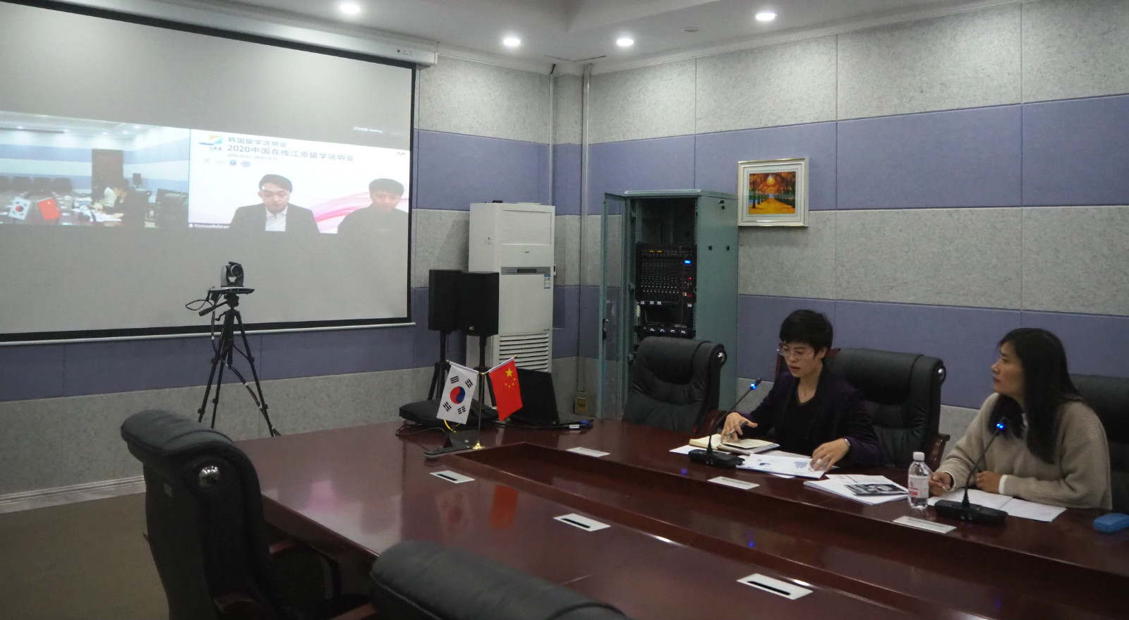 10月23日上午,青岛农大在专家楼视频会议室参加2020年线上韩国江原道教育展,并与韩国延世大学未来学院进行线上一对一沟通,共同洽谈两校国际合作交流事宜。延世大学未来学院对外协力处徐泰洪,我校国际处副处长许颖,外国语学院教师邹毓莹及国际处相关人员参加了线上会谈。