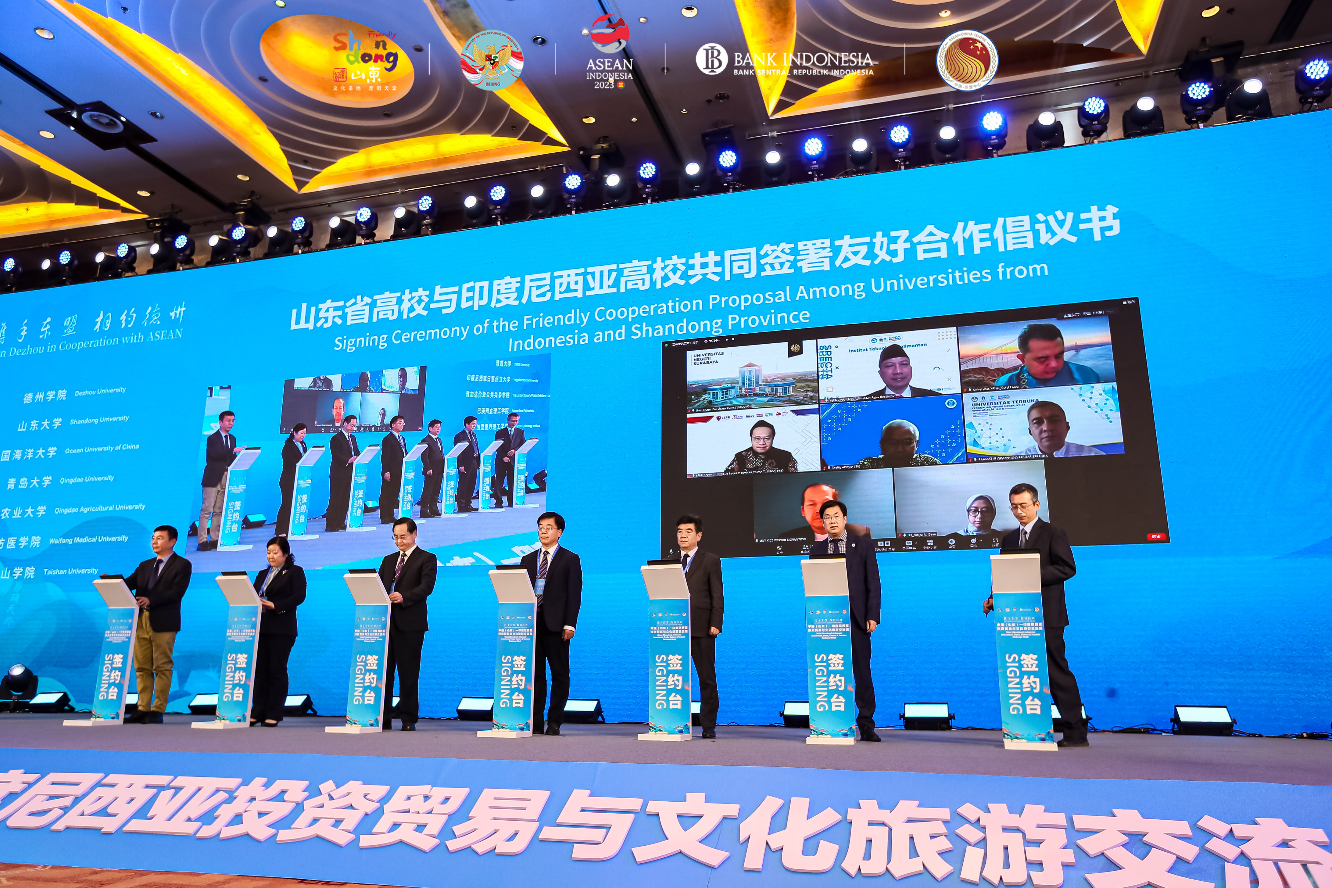 积极服务黄河重大国家战略,组织召开了“盐碱地高效农业技术国际学术交流会”“黄河三角洲盐碱地与生态农业学术会议”等,发起成立了“盐碱地高效农业国际协同创新中心”。获批教育部“汉语桥”线上团组交流项目,组织“云游魅力山东,感知黄河文化”线上团组交流项目,来自埃及的60名学员云端走进山东,感受黄河文化的魅力。