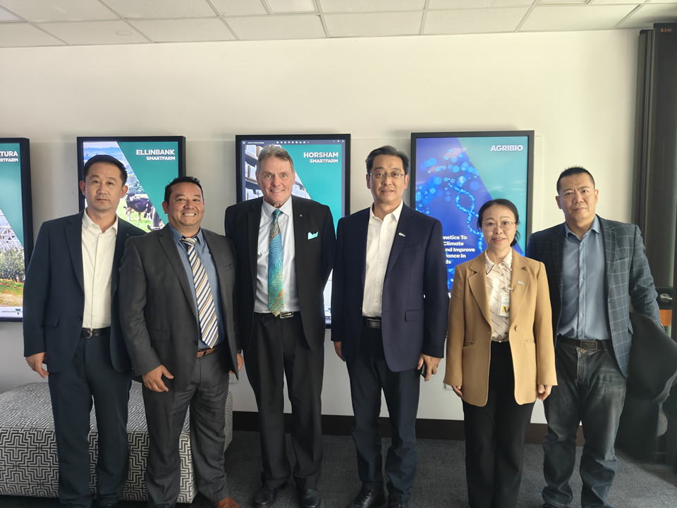 在澳大利亚维多利亚州农业研究中心,代表团与中心主任西蒙娜·沃纳教授进行座谈。代表团从生物安全、环境变化、生产力及可持续发展等方面全面了解了中心的科研领域,以及“以研究中心为核心、辐射智慧农场建设与应用”的建设架构,重点学习了其与高校、企业的合作模式,及其科研成果转化的路径及成果。潘军指出,中心的建设经验值得学习,特别是研究中心与智慧农场技术应用相结合的互动模式,有效助力科研成果的转移转化;中心作为政府部门,与高校、企业的深度融合合作模式值得借鉴;希望未来双方深入合作,在科技研发及国际产学研用合作不断开辟新路径。