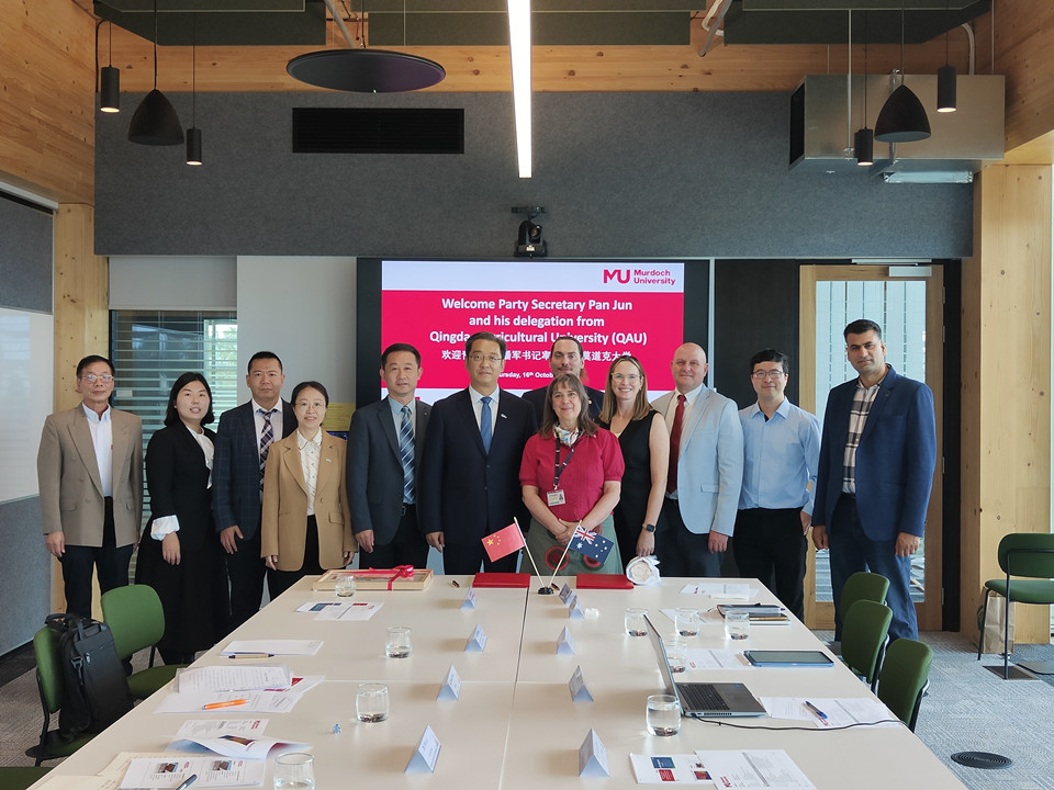 访问澳大利亚莫道克大学期间,代表团与莫道克大学校长安德鲁·迪克斯教授等进行了座谈。双方回顾了两校在科研合作、博士联合培养以及师生交流等方面取得的重要成果。潘军对莫道克大学的欢迎表示感谢,对两校取得的合作成果表示肯定,对其大学服务国家、服务社会理念表示赞同,并希望两校将以此次访问为新的契机,进一步更新升级合作领域与方向,携手助力全球农业发展,不断取得新成就。