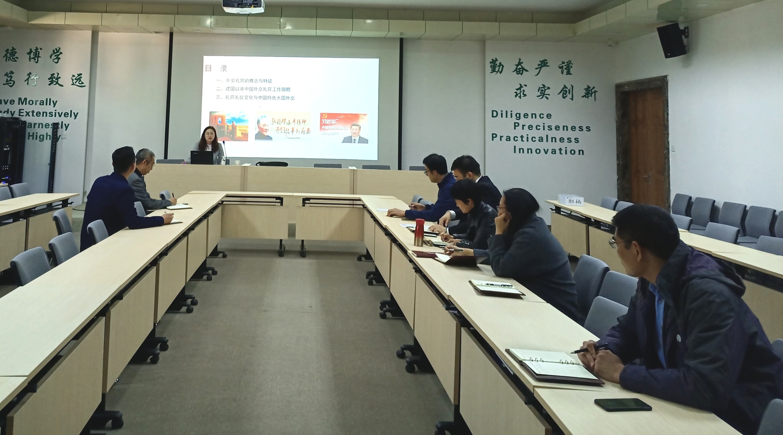 4月15日下午,williamhill英国结合本部门工作实际,特邀学校马克思主义学院刘耀虹博士在专家楼115报告厅为全体人员做题为《外交礼宾礼仪与中国特色大国外交》的专题宣讲。