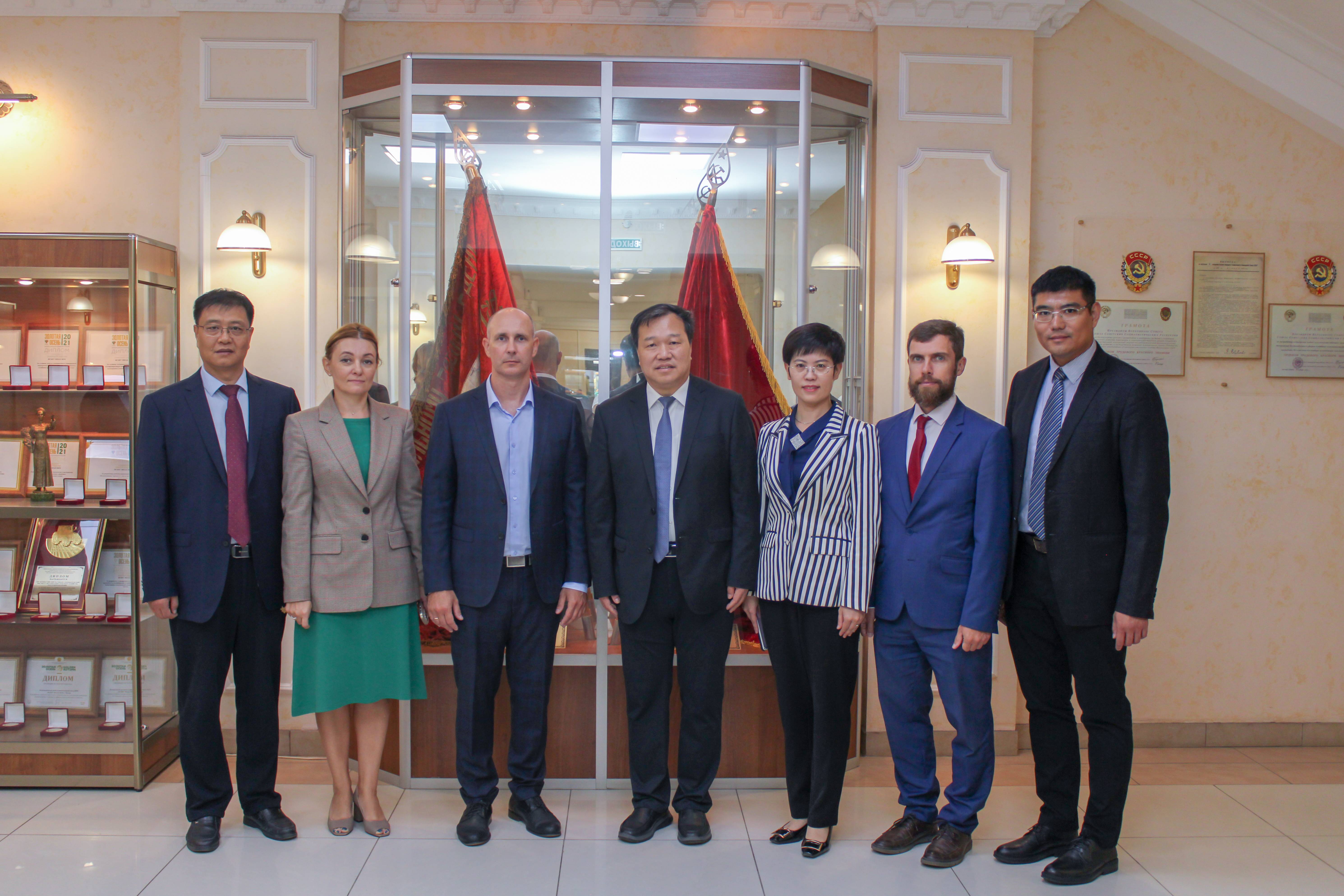 在俄期间,William威廉英国代表团一行前往中国驻俄罗斯大使馆,郭善利分别向教育公参曹士海和科技公参苗菲汇报了我校对俄交流合作情况,以及此次访问的目的和取得的成果。