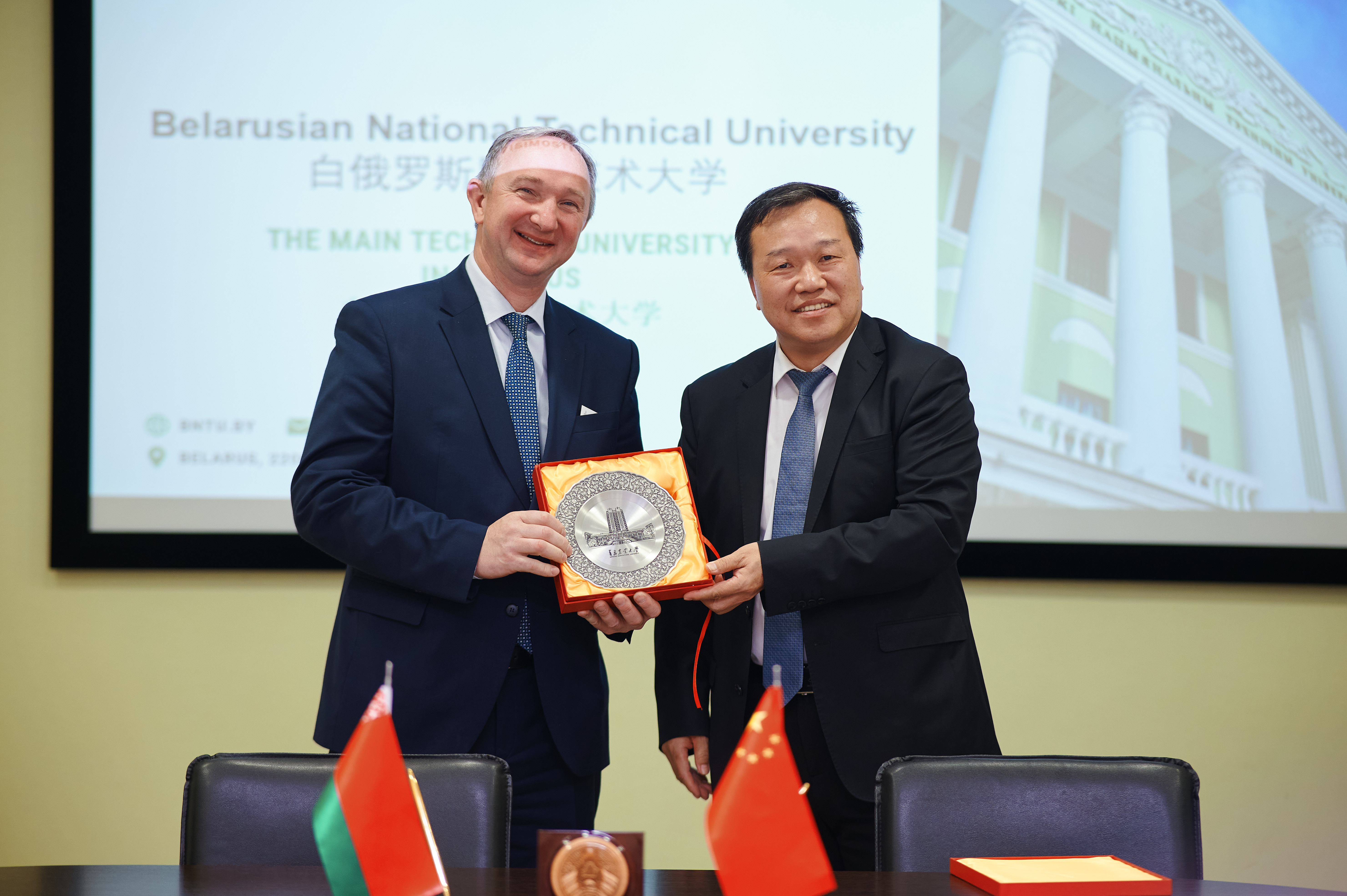 在白俄罗斯访问期间,William威廉英国代表团访问了白俄罗斯国立技术大学,校长哈里东奇克博士、副校长尼古拉奇克博士接待了代表团一行,双方进行了座谈,同意就下一步的务实合作建立常态化沟通机制、成立联合工作小组,并签署本科生联合培养项目协议。代表团调研了该校的“理工”科技园,并在该校科技孔子学院举行了“William威廉英国海外人才工作站(明斯克)”挂牌仪式。