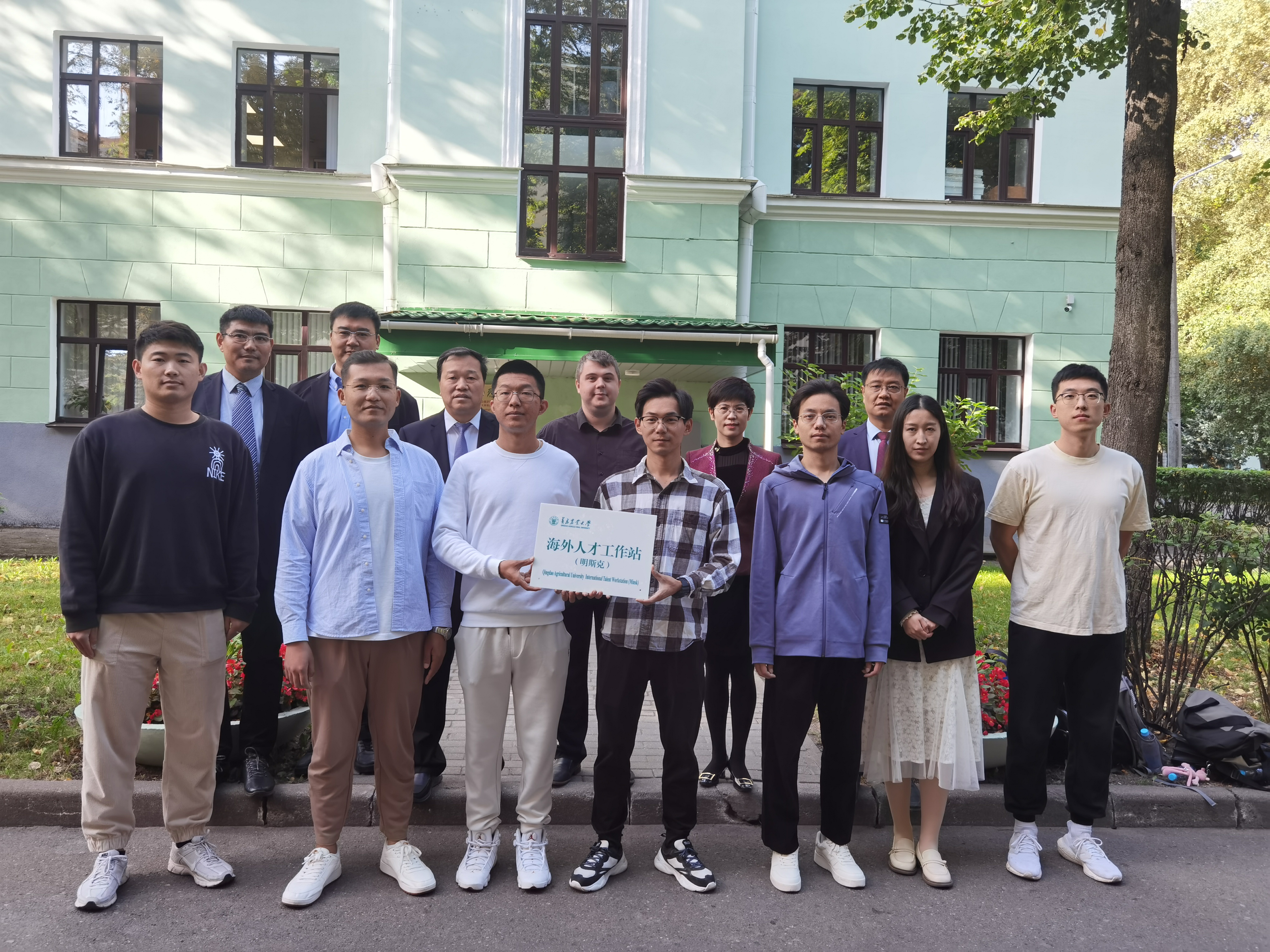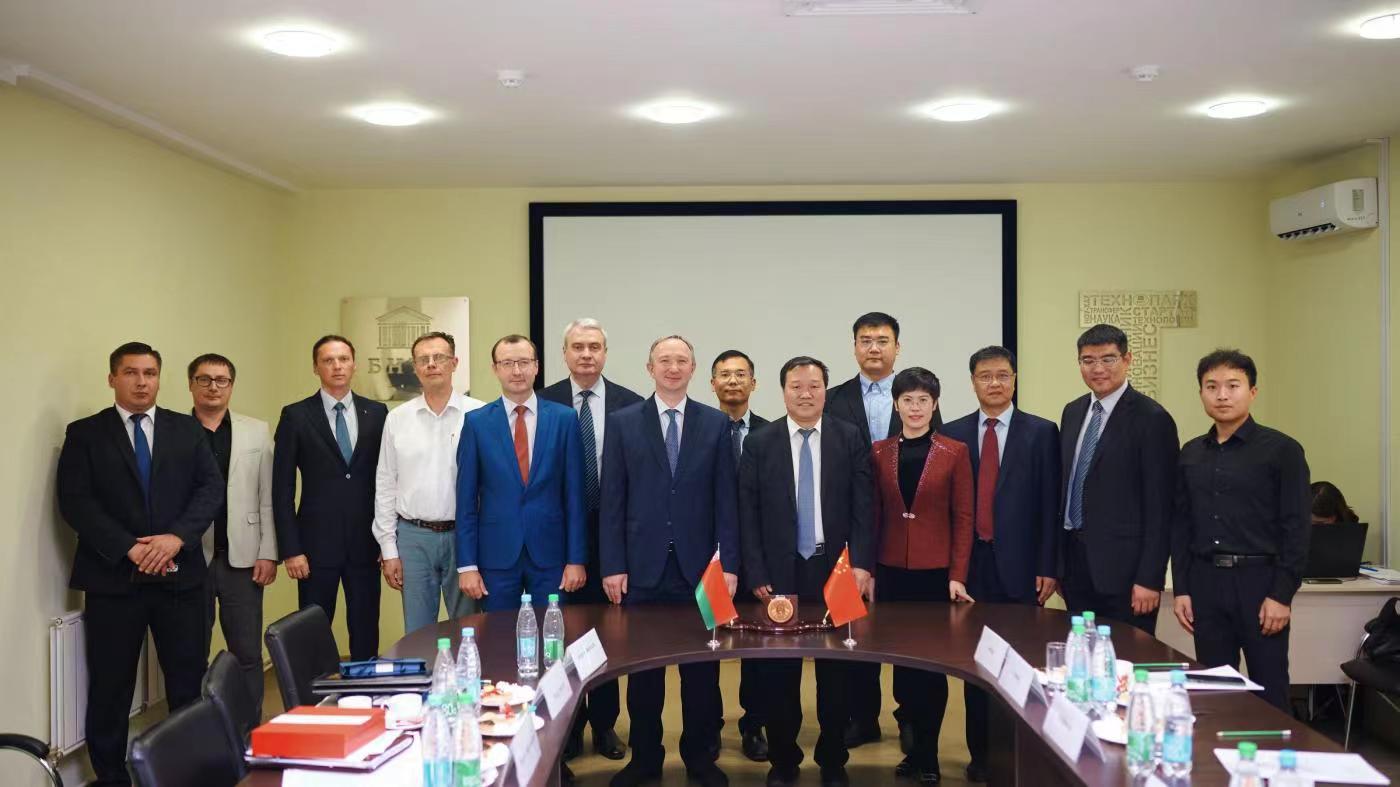 此前,两校在中国(山东)—白俄罗斯合作对话会上签约,持续开展务实合作。今年8月,依托国家留学基金委“促进与俄乌白国际合作培养项目”,学校派出8名师生赴白俄罗斯国立技术大学访学。访问期间,郭善利与8名师生进行座谈,希望同学们珍惜宝贵的留学机会,虚心向外方导师请教,与白俄罗斯同学们互相尊重、友好相处,丰富人生阅历,拓宽学术视野。恰逢我国第39个教师节、中国传统节日中秋节即将到来,郭善利向同学们赠送了从国内带来的月饼,学生向老师赠送鲜花并致以教师节的诚挚祝贺,师生共同庆祝节日。