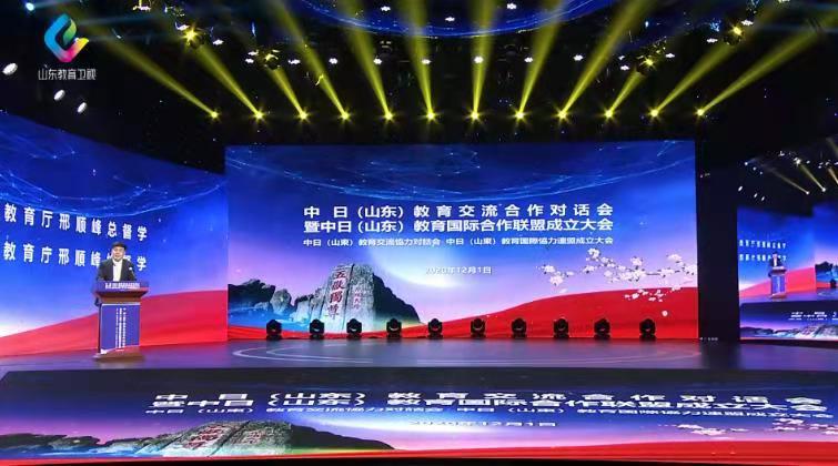 本次对话会由山东省教育厅与日本日中交流文化中心共同举办,主会场设在山东省电视台,全省300余所院校通过视频连线方式远程参与,济南、日本两地同步直播。