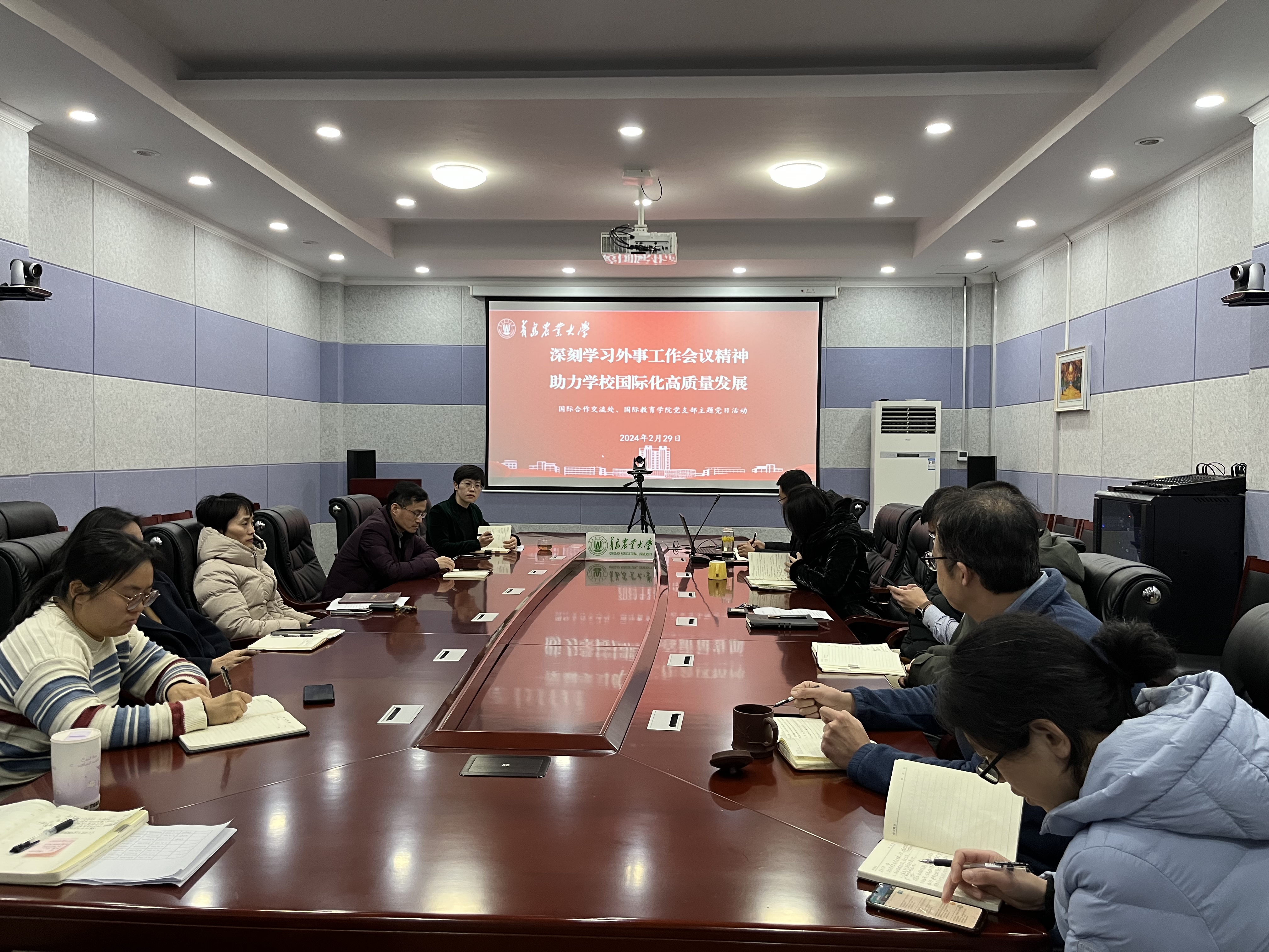 2月29日下午,williamhill英国、国际教育学院党支部在专家楼117开展“深刻学习外事工作会议精神 助力学校国际化高质量发展”主题党日活动,活动由williamhill英国处长许颖主持。