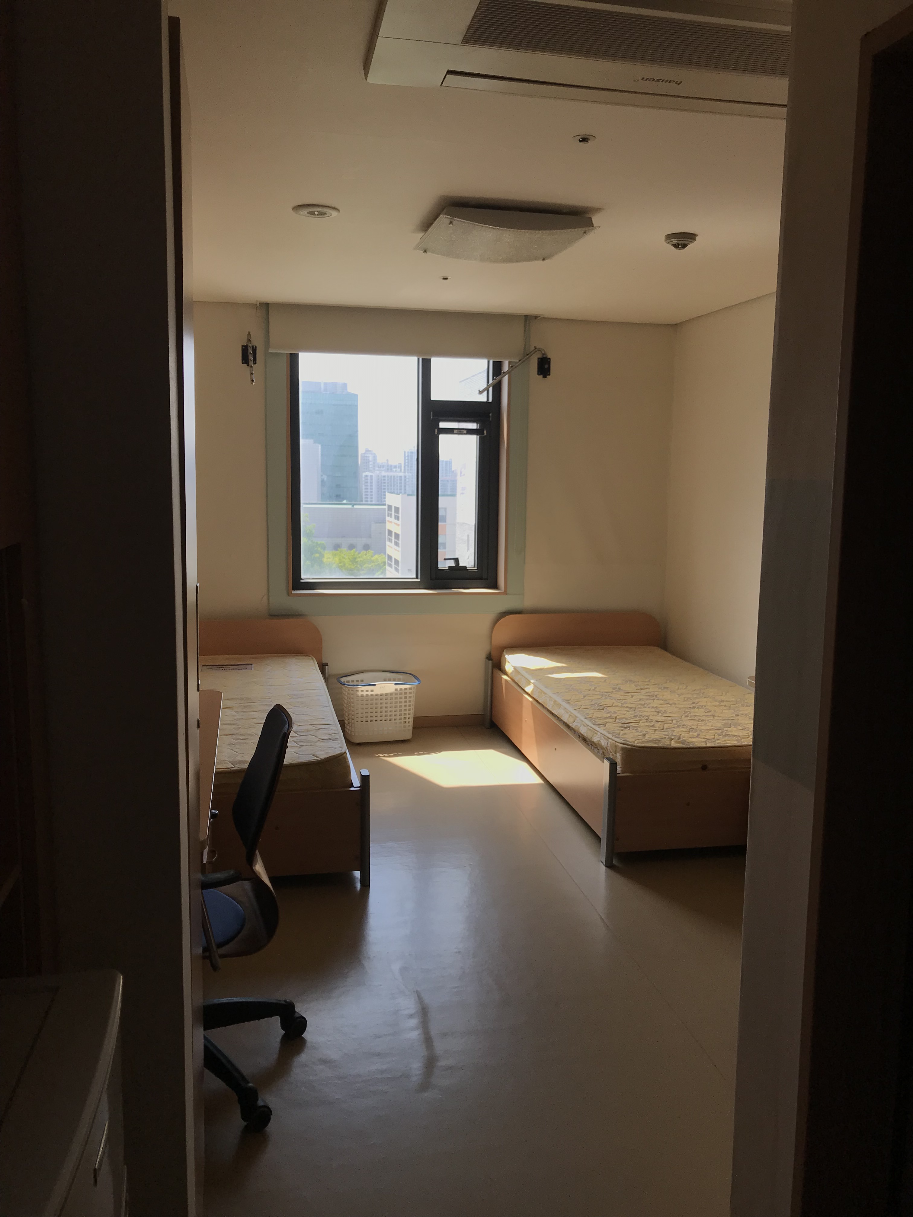 我们去了是选择住在学校的校内宿舍,虽然是住在宿舍,还没有真正去他们韩国人家里去参观,但就感受到了他们住宿习惯与国内的不同。在宿舍里是要求脱鞋进屋子的,屋子里面不能穿拖鞋,这也可能是跟他们用地暖有关,这样就能让脚也很温暖。