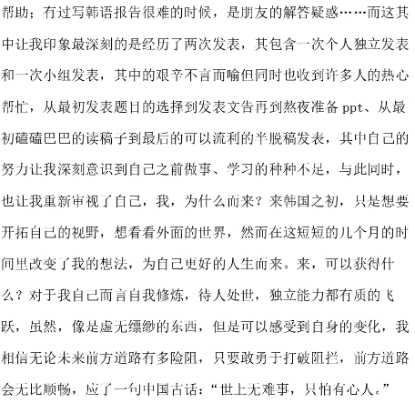 2018年秋季赴韩国公派学生心得体会—感恩一路陪伴