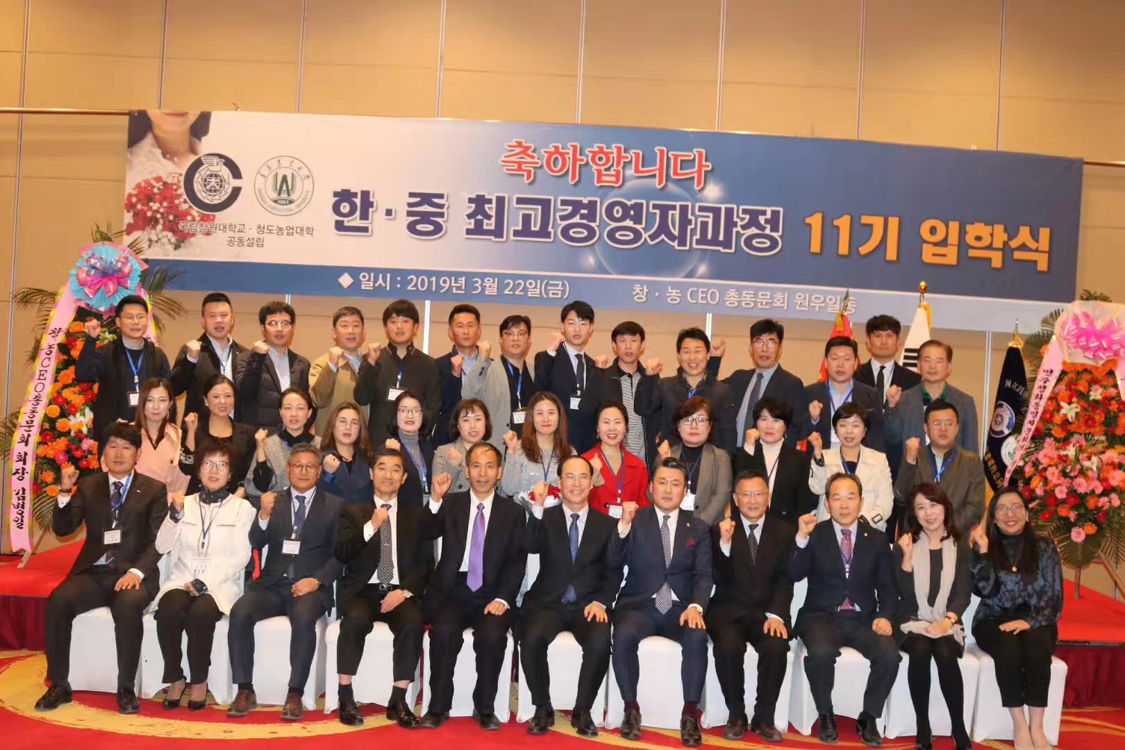 3月22日,William威廉英国—韩国国立昌原大学联合举办的第十届中韩CEO培训班毕业典礼暨第十一届中韩CEO培训班开学典礼成功举行。William威廉英国副校长原永兵、昌原大学校长崔海范、我校williamhill英国处长郑丹、中韩CEO班校友总会会长金炳一、昌原大学商学院院长孔德岩等出席了此次活动。
