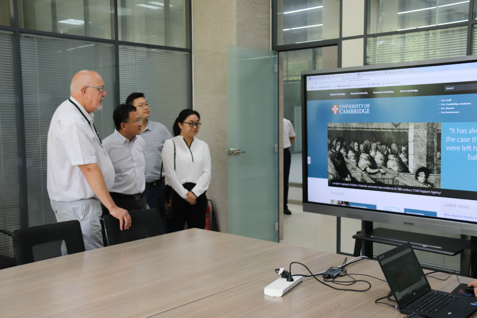 会谈结束后,郑丹陪同Steve教授等一行三人就我校教学及辅助设施、网络条件、办公条件、住宿条件等相关情况进行实地考察。