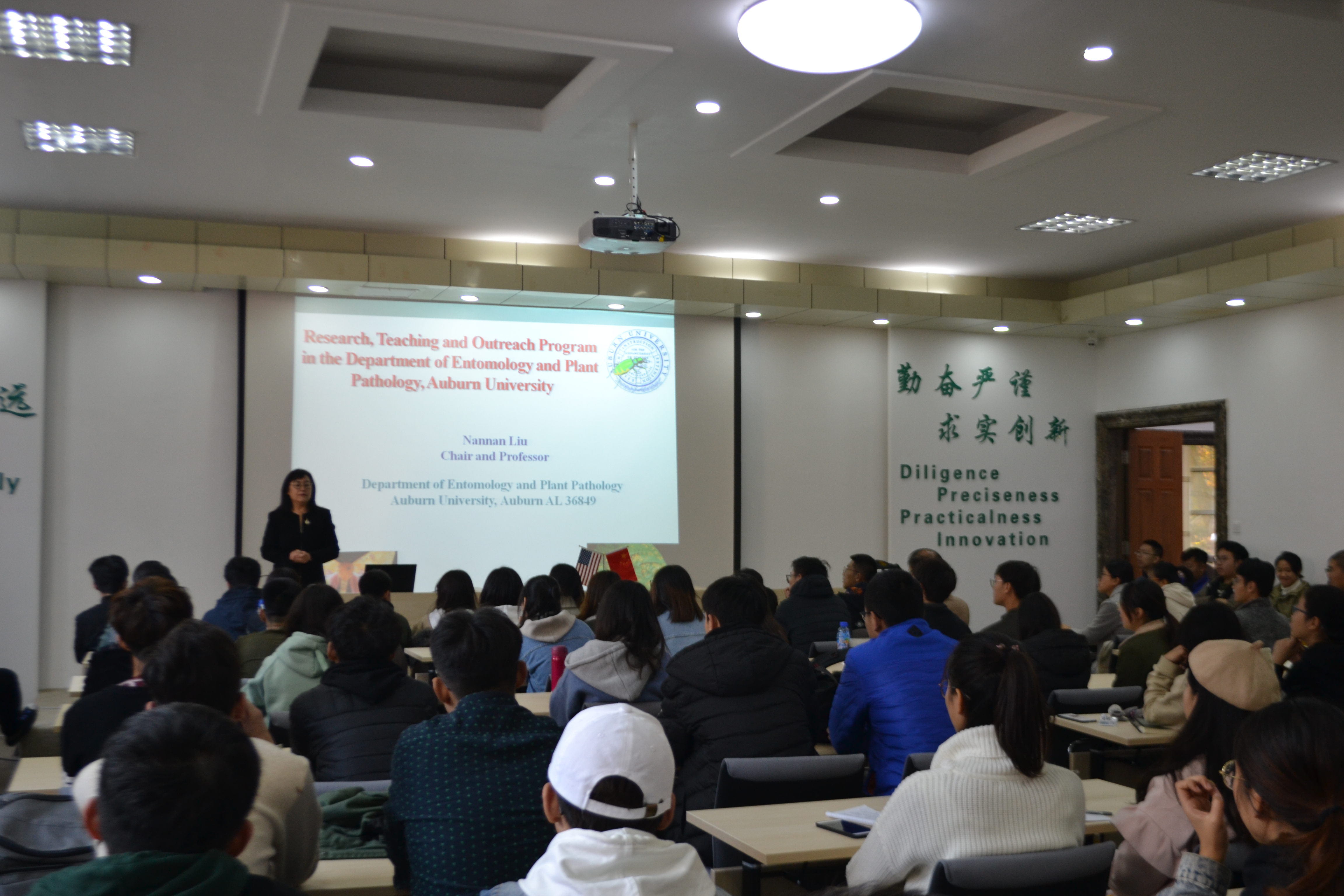 11月14日上午,美国奥本大学昆虫与植物病理学系主任Nannan LIU教授来访青岛农大,并在专家楼学术报告厅针对奥本大学“3+2”本硕连读项目进行了介绍,植物医学院副院长黄金光出席了介绍会,植物医学院2017级全体学生参加了介绍会。