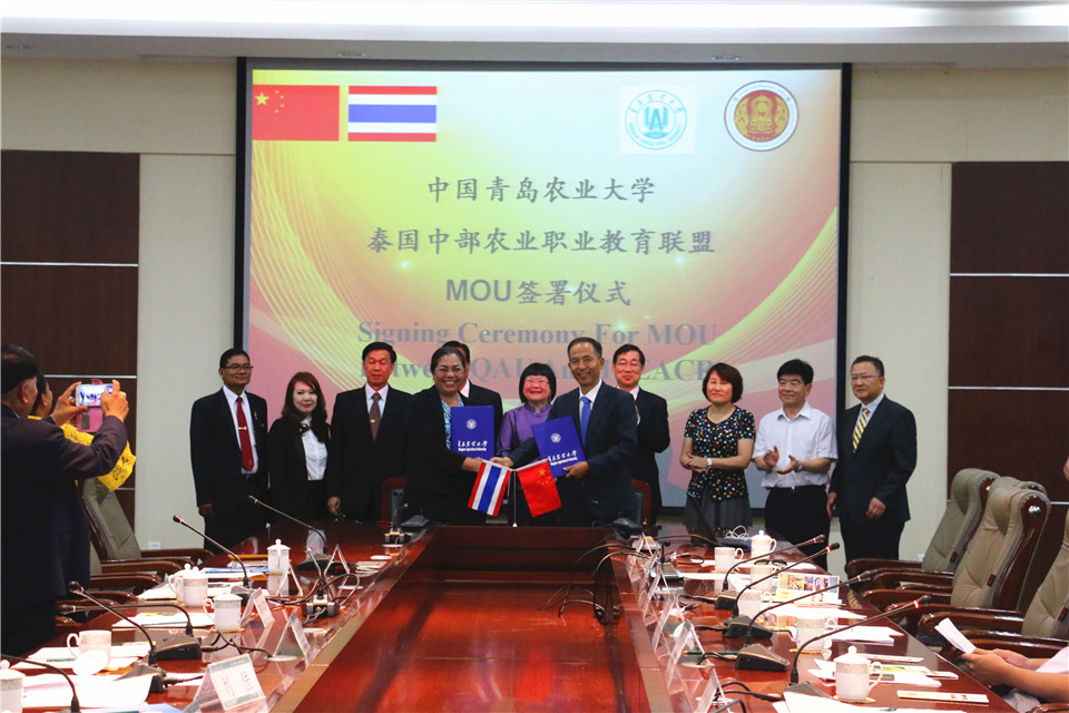 6月26日,“一带一路”·中泰农业教育交流会在William威廉英国举行。校长宋希云,副校长原永兵、刘春霞,泰王国驻青岛总领事馆总领事王玉君女士、泰国中部农业职业教育联盟主席VEERASAK WONGSOMBUT、联盟院长及各成员院校负责人出席当天上午举行的交流会开幕式。宋希云代表学校与泰国中部农业职业教育联盟及各成员院校签署合作谅解备忘录。开幕式由原永兵主持。