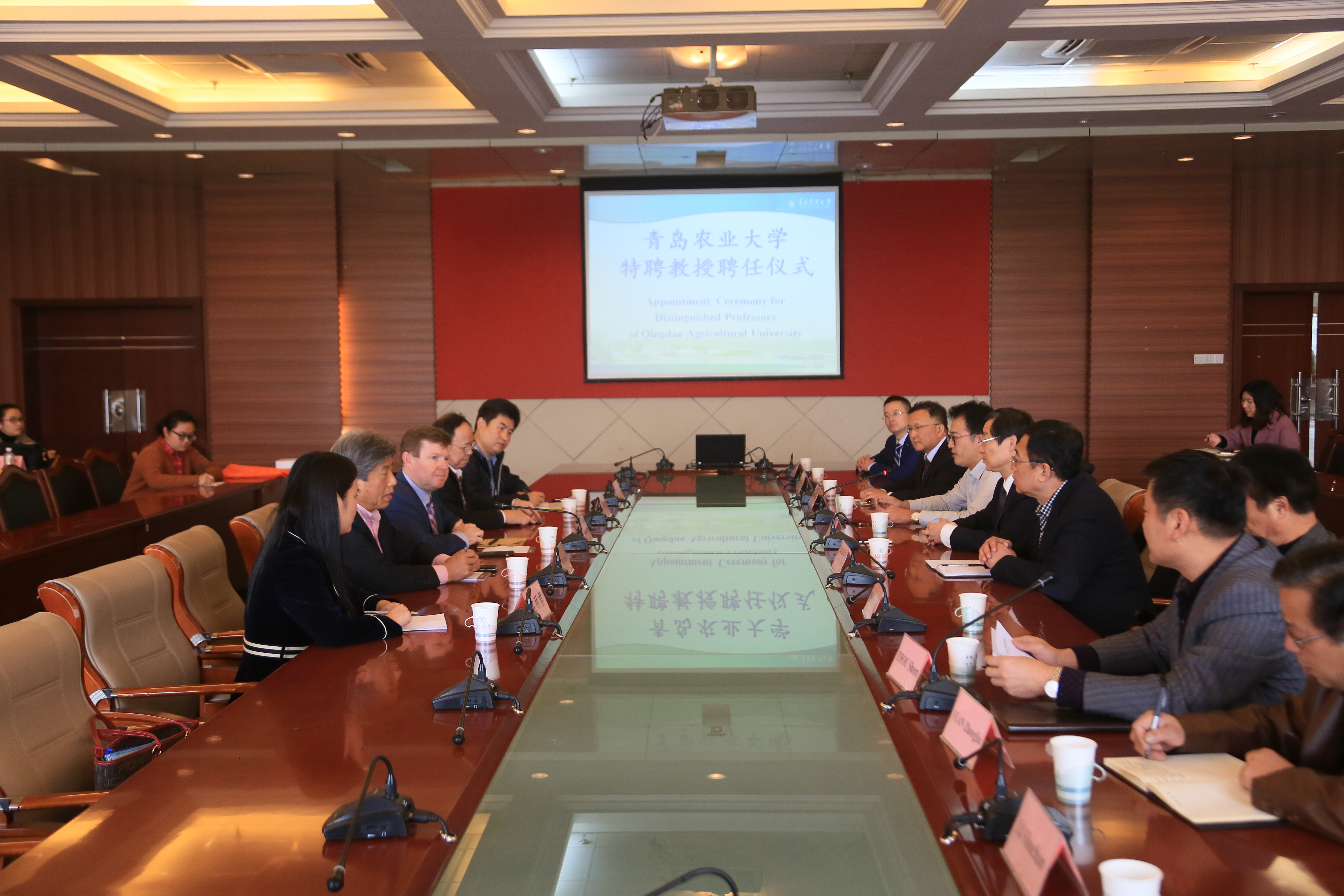 11月7日下午,莫道克大学哈瑞•巴特勒中心主任Simon McKirdy教授, Yonglin Ren教授受聘为我校特聘教授,聘任会议在主楼三楼会议室举行,校长宋希云、党委副书记王庆军出席了会议,我校客座教授、中国农科院创新工程生物入侵创新团队首席科学家、泰山学者特聘教授万方浩、我校相关部门、学院负责人参加了会议,会议由人事处处长周顺主持。