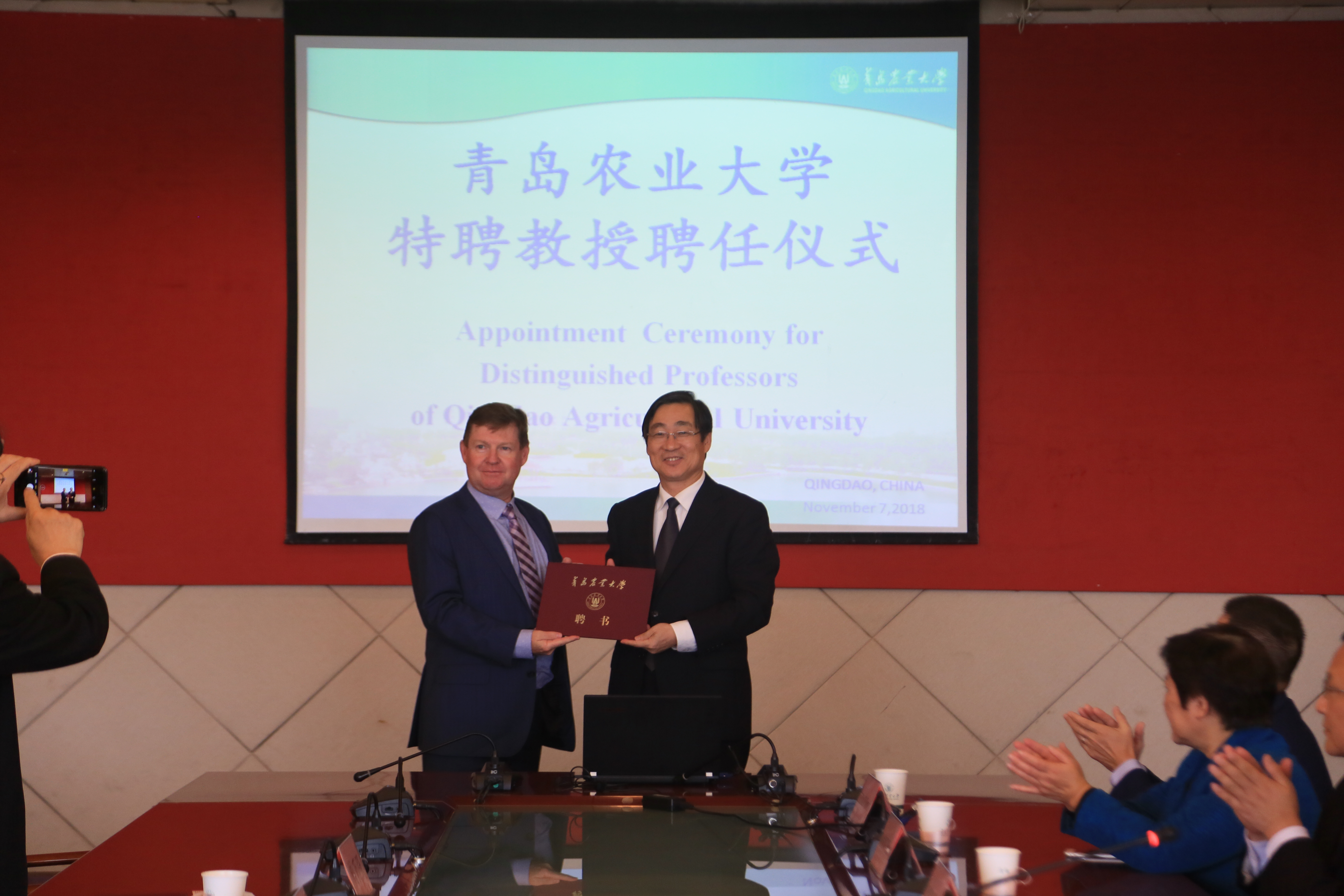 宋希云分别为Simon McKirdy教授, Yonglin Ren教授颁发聘任证书,并对他们加入青岛农大表示热烈的欢迎。宋希云向他们介绍了我校目前立足社会发展的办学目标、矢志服务“农业、农村、农民”的办学方向,把学校的建设与乡村振兴紧密结合,根据我校的学科建设特色切实解决当今社会高度关注的粮食质量、食品安全、畜牧业卫生等相关可持续发展问题。两位教授的加入必将对我校相关学科的高水平建设、国际化科研平台的搭建以及学校整体学术水平的提升具有实际的推动作用。