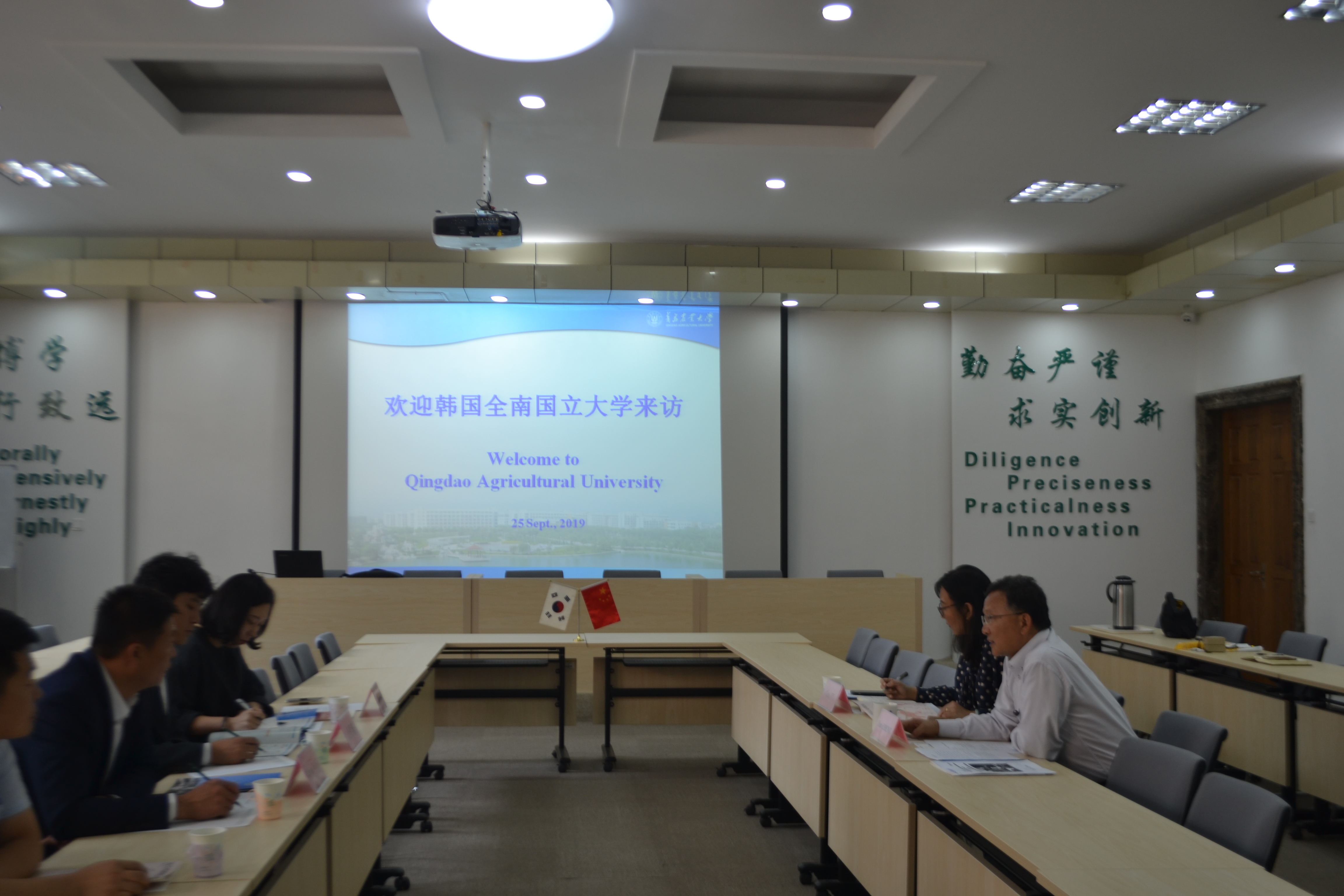 9月25日上午,韩国全南国立大学国际教育院topik韩国语能力考试主管陈怜我、韩国国立全南大学中国业务总负责人金明瑾一行四人来访青岛农大,我校williamhill英国处长郑丹在专家楼会见了来访客人并与他们进行了会谈,williamhill英国对韩事务负责人参加了会谈。