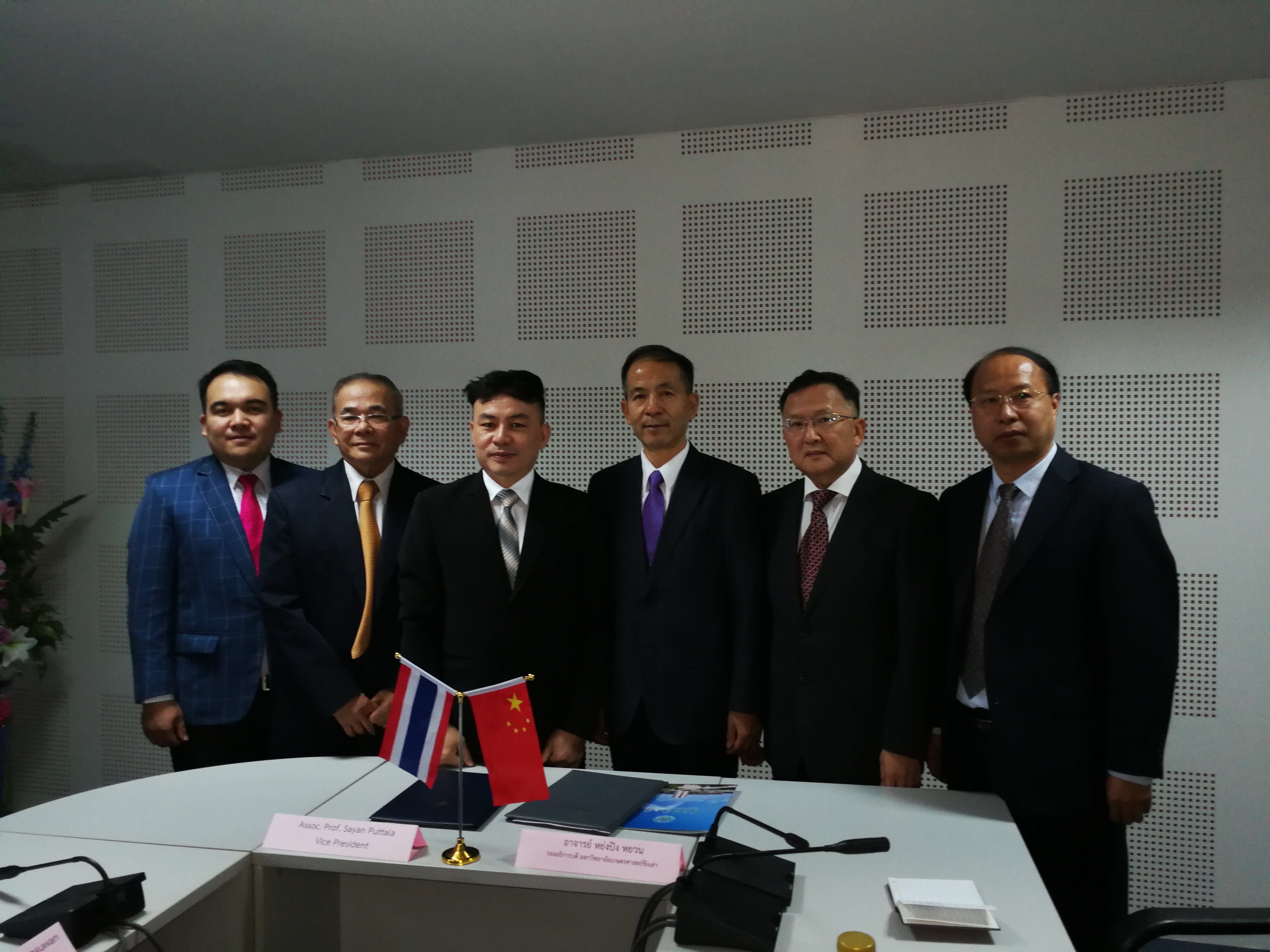 访问泰国曼松德兆帕亚皇家师范大学期间,代表团与该校副校长Sayan Puttala、相关专业学院院长、教授等进行了座谈。原永兵代表青岛农大与SayanPuttala共同签署了MBA校际合作协议,具体专业包括工商管理、教育管理、艺术学、计算机应用与技术。随后,代表团在该校国际处工作人员的陪同下实地考察了校园各项基础设施建设。